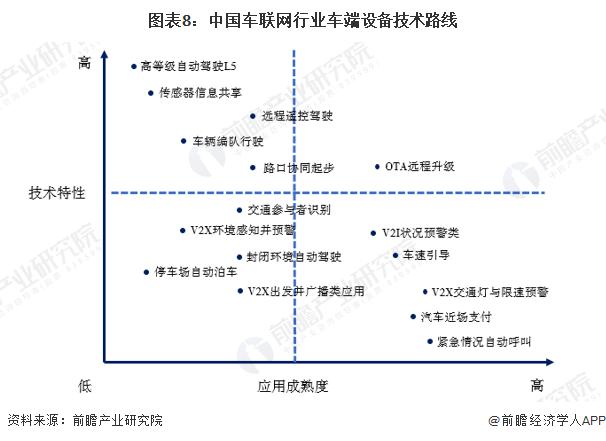 在車端設備技術特性較高的技術路線中,OTA 遠程升級是應用成熟度最高的技術,而高等級自動駕駛 L5 是應用成熟度最低、突破難度最大的技術。在車端設備技術特性較低的技術路線中,V2X 交通燈與限速預警、緊急情況自動呼叫是應用成熟度最高的技術,而停車場自動泊車是應用成熟度最低的技術。