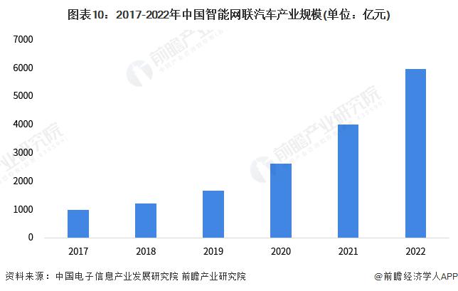 在車聯網技術快速發展及滲透下,發展智能網聯汽車已成共識,我國推動智能網聯汽車發展環境日趨完善。面對科技革命和產業變革機遇,自主高端品牌及造車新勢力企業紛紛布局智能網聯汽車業務,并已在產業鏈多個環節完成布局。隨著智能網聯技術的進步、產品持續迭代升級以及整車電子電氣架構的改變,大批互聯網公司涌入國內市場,以跨界合作方式切入智能網聯汽車領域。上汽、北汽、長安、廣汽等傳統車企開始研發、測試和推出智能網聯車型。部分車型已全系標配 L2 級智能駕駛輔助功能,智能網聯汽車在全國多地實現常態化載人載物的測試和示范應用。2017-2021 年,中國智能網聯汽車產業規模快速增長,2021 年中國智能網聯汽車產業規模突破 4000 億元,同比增長 53.1%。初步統計 2022 年,中國智能網聯汽車產業規模將達到 5975 億元。