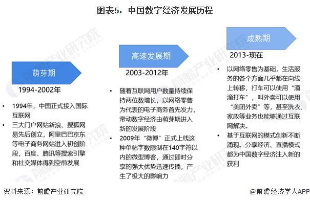 2021 年 3 月,《中華人民共和國國民經濟和社會發展第十四個五年規劃和 2035 年遠景目標綱要》中明確提出:迎接數字時代,激活數據要素潛能,推進網絡強國建設,加快建設數字經濟、數字社會、數字政府,以數字化轉型整體驅動生產方式、生活方式和治理方式變革。2022 年 1 月,《" 十四五 " 數字經濟發展規劃》頒布,提出到 2025 年,數字經濟核心產業增加值占國內生產總值比重達到 10%,數據要素市場體系初步建立,產業數字化轉型邁上新臺階,數字產業化水平顯著提升,數字化公共服務更加普惠均等,數字經濟治理體系更加完善。2023 年,《數字經濟核心產業分類與國際專利分類參照關系表 ( 2023 ) 》以及《數字經濟和綠色發展國際經貿合作框架倡議》發布,數字經濟發展進入國際化階段。