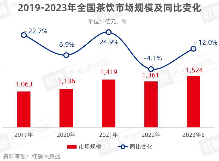 據紅餐產業研究院測算,預計2023年全國茶飲市場規模將達1,524億元,同比增長12.0%。