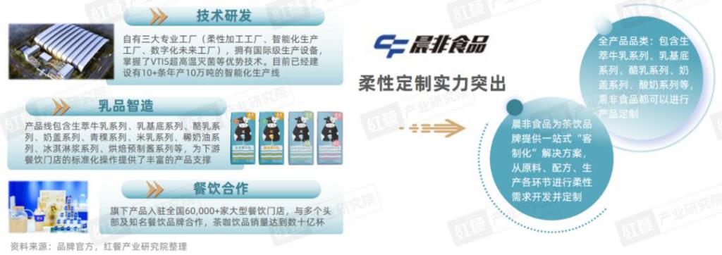 作為一家專業為新式茶飲、咖啡、餐飲等領域提供全乳品解決方案的綜合型乳品企業,晨非食品在技術研發、乳品智造等方面均具備強大實力,與多個茶飲品牌也建立了長期合作,推出了茶咖等專用的乳制品,面對下游的柔性定制需求具有高度的針對性和靈活性。