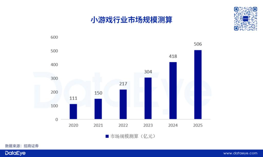 收入同比增長并創新高的原因是多樣的,其中小游戲賽道在今年的快速崛起就是其中一個動力。在論壇上,DataEye 創始人、CEO 汪祥斌先生分享,預測 2023 年小游戲市場規模有望達到 304 億,而到 2025 年有望突破 500 億。