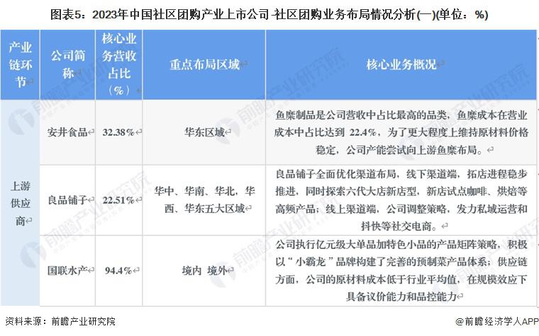 從業務布局來看,核心業務占比方面,國聯水產 ( 300094 ) 、妙可藍多 ( 600882 ) 、宏輝果蔬 ( 603336 ) 等企業均在 80% 以上,表明上述企業的業務較為集中 ; 重點布局區域方面,安井食品 ( 603345 ) 、來伊份 ( 603777 ) 業務布局集中在華東區域 ; 核心業務概況方面,多家上市企業具有自身的社區團購平臺。