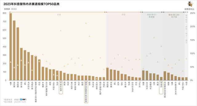 2023 年抖音服飾內衣賽道增速 TOP50 品類