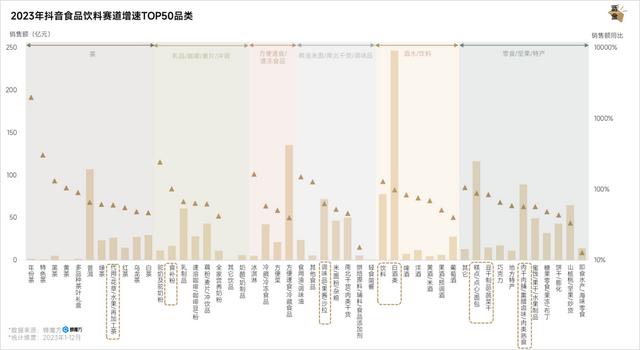 2023 年抖音食品飲料賽道增速 TOP50 品類