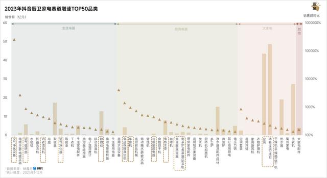 2023 年抖音廚衛家電賽道增速 TOP50 品類