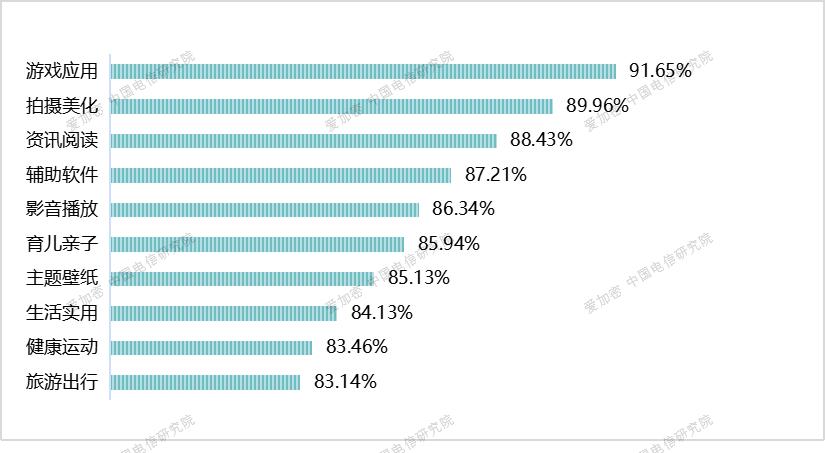 全國活躍移動(dòng)互聯(lián)網(wǎng)應(yīng)用功能類型分布情況