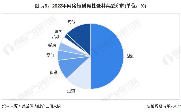 網絡短劇中女性用戶是較大的受眾群體,其中虐戀題材占比高達 42%,甜寵題材達 38%,是網絡短劇常見題材。萌寶占比 12%,其他題材占比低于 5%。