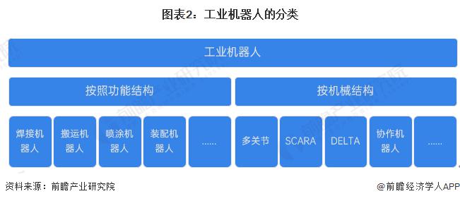 從工業機器人產業鏈環節來看,上游包括減速器、伺服機構、控制系統等核心零組件 ; 從產業鏈中游為工業機器人整機制造及系統集成,可分為多關節、SCARA、DELTA、協作型機器人等 ; 從產業鏈下游來看,主要應用領域包括汽車工業、電子制造、機械裝備制造,物流倉儲等領域。整體來看,工業機器人產業鏈市場參與主體多元化特征明顯。