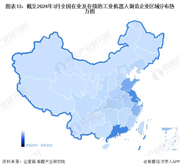 根據企查貓信息,全國工業機器人行業制造企業主要聚集在廣東、江浙、山東等沿海地區,在產業鏈配套和消費集聚等方面有一定的優勢。