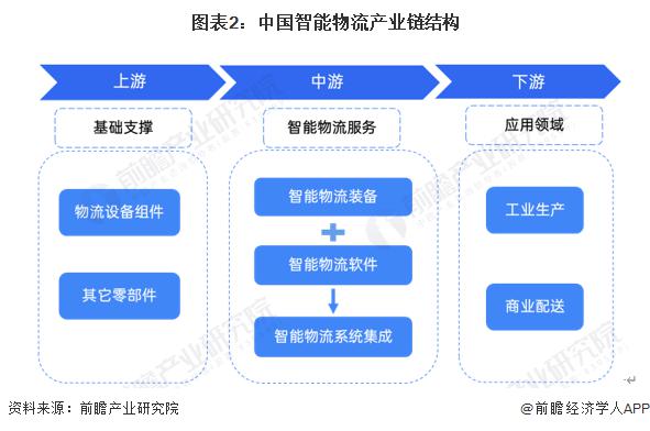 智能物流行業產業鏈主要分為上、中、下游三個部分。上游主要為單機設備和零部件提供商 ; 中游是解決方案提供商,自身擁有核心設備或軟件產品,并根據行業的應用特點使用多種設備和軟件,設計建造物流自動化系統 ; 下游是應用物流自動化系統的各個行業,主要分為工業生產和商業配送。