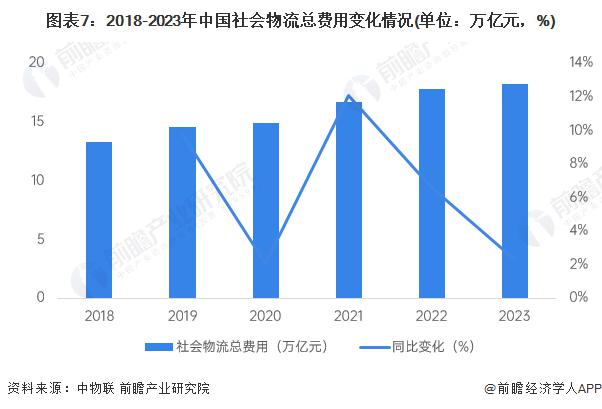 從物流總費用情況來看,中國物流費用總額持續增長。2023 年社會物流總費用 17.8 萬億元,同比增長 2.3%,增速有所下滑。