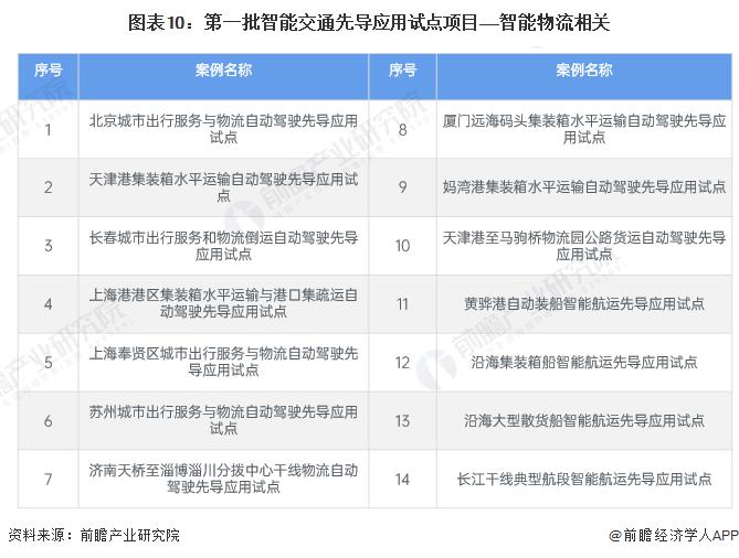 國家層面正著力拓展智慧物流應用典型場景,推動智慧物流技術創新,強化重點標準實施應用,支持建設國家級服務業標準化試點示范,培育一批具有帶動性、引領性的試點示范項目。2022 年 10 月,交通運輸部辦公廳公開《關于公布第一批智能交通先導應用試點項目 ( 自動駕駛和智能航運方向 ) 的通知》,其中與智能物流相關的項目主要集中在港口物流車輛自動駕駛、智能航運等領域,具體名單如下: