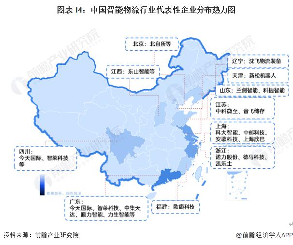 從智能物流行業代表性企業分布情況來看,廣東、上海、江蘇、浙江等地代表性企業較多,上述地區科創活力較強、市場對智能物流服務需求較大、產業配套較為完備,智能物流企業分布較為密集,代表企業有今天國際、諾力股份等。