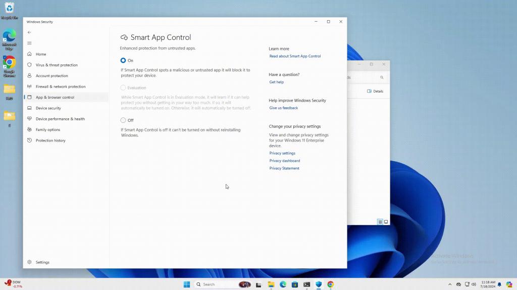它取代了 Windows 11 中的 SmartScreen,后者是 Windows 8 中引入的一項類似功能,旨在防止潛在的惡意內容(未啟用智能應用控制時,SmartScreen 將接管)。