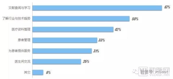 67%用戶使用APP的原因,都包含了文獻查詢與學習;50%的用戶使用APP的原因包含了解行業知識、醫療技術趨勢,求知需求是醫生使用移動醫療APP的重要原因。