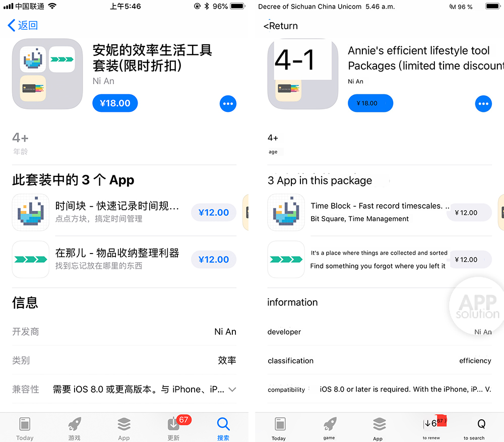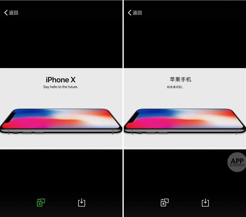 我在拿 App Store 應用界面翻譯對比時發現,右下角有顏色部分無需翻譯,但掃描翻譯后出現錯位。