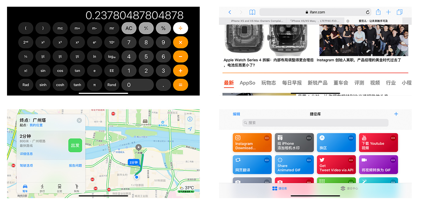 更大的屏幕帶來的優勢還不止這點,iPhone XS Max 還重新帶回了過往 Plus 系列獨有的橫屏模式,這也是以前我在用 Plus 系列時非常喜歡的功能。