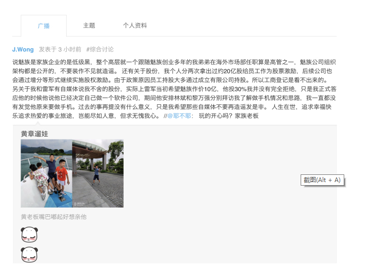 7 月 31 日凌晨,魅族董事長兼 CEO 黃章在魅族社區發文,一舉對流傳多年的 " 黃章創業時不舍股份 "、" 與雷軍恩怨 "、" 魅族是家族企業 " 等事件及觀點做出回應。