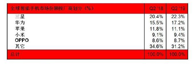 可以看到的是,全球智能手機市場整體出貨量都在下滑,來自調研機構 Strategy Analytics 的報告顯示,2019 年第二季度全球智能手機出貨量同比下降了 3%。