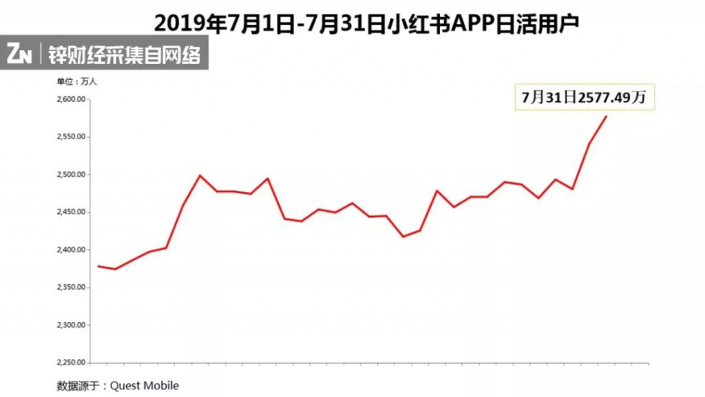 小紅書 APP7 月日活用戶數仍呈增長趨勢