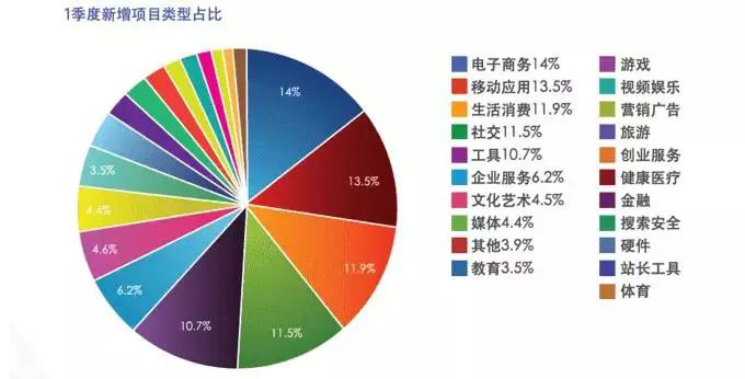 36 氪發(fā)布的《2013 年第 1 季度中國(guó)互聯(lián)網(wǎng)創(chuàng)業(yè) & 融資分析報(bào)告》中顯示,延續(xù) 2012 年下半年的趨勢(shì),2013 年 Q1,電子商務(wù)、移動(dòng) App、生活消費(fèi)、社交、工具等仍然是創(chuàng)業(yè)者創(chuàng)業(yè)的主要概念和方向。電子商務(wù)和移動(dòng) App 開(kāi)發(fā)屬于最熱門的創(chuàng)業(yè)方向,分別占到新增項(xiàng)目總數(shù)的 14% 和 13.5%,另外再加上生活消費(fèi)、社交和工具,這 5 大概念總共貢獻(xiàn)了超過(guò) 6 成的新增項(xiàng)目。