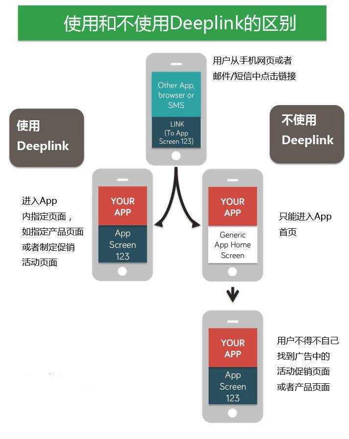 其次,這項技術(shù)可以將不同渠道的流量引流到App內(nèi),提高產(chǎn)品的轉(zhuǎn)化率。不管是短信營銷、郵件營銷還是社會化營銷,對于用戶來說不再是一個無效的鏈接,而是可以直達(dá)指定頁面的鏈接,這樣,就可以將原本屬于App的流量又回到App里。