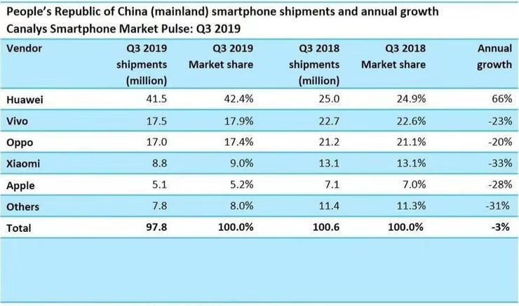 值得注意的是,華為的一家獨大不僅僅導(dǎo)致了 OV 小米蘋果的銷量下滑,實際上,在它們之外,其他智能手機廠商的市場份額總和從去年同期的 11.3% 減少到今年的 8% ——考慮到前五名中只有第一名華為出現(xiàn)了市場份額增長,實際上其他四個廠商也是華為份額增長的 " 受害者 ",則其它廠商的市場空間進一步縮小,還是因為華為的高歌猛進。
