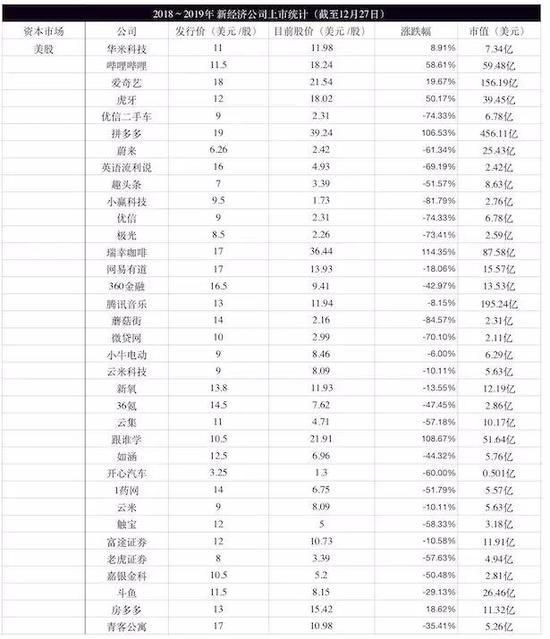 這已經成為一個普遍的現象,據投中網統計,2018 年赴美股、港股上市的新經濟公司共 57 家,其中 42 家跌破發行價。