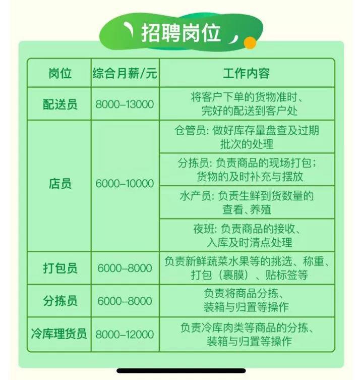 「電商在線」發(fā)現(xiàn),打開叮咚買菜 app,就直接在首焦位置掛上了招聘鏈接,主要招聘崗位就是配送員、打包員、分揀員、冷庫處理員等基礎(chǔ)崗位。