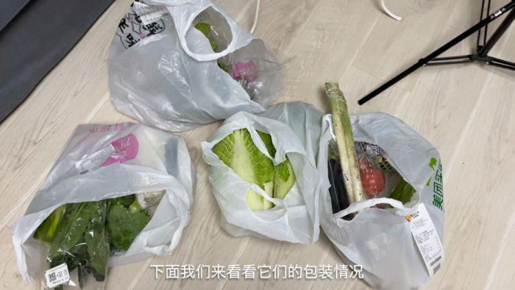 點評:配送速度上,下單時顯示最早到達(dá)的餓了么卻是最晚到的,顯示最晚的美團(tuán)買菜是第一個到的。