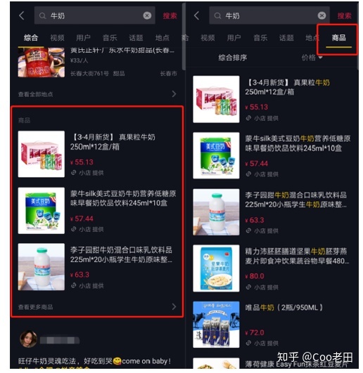 讓抖音更像淘寶,當用戶有購物需求時,可以直接在抖音搜索商品類目,購買過程由商品到小程序門店,而不是過去的搜索電商小程序,再通過小程序查看商品,這樣就為用戶在抖音“逛街”提供了使用場景。