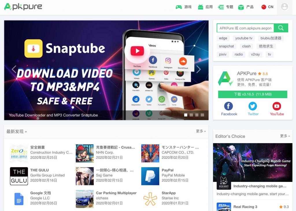 首先它自己就是一個下載 apk 的應用市場,上面的應用也很全面,有各種分類,支持中文,而且大多都是跟著 Google Play 商店更新的,偶爾有一些會找不到或者更新的慢一點,但整體還很好用的。