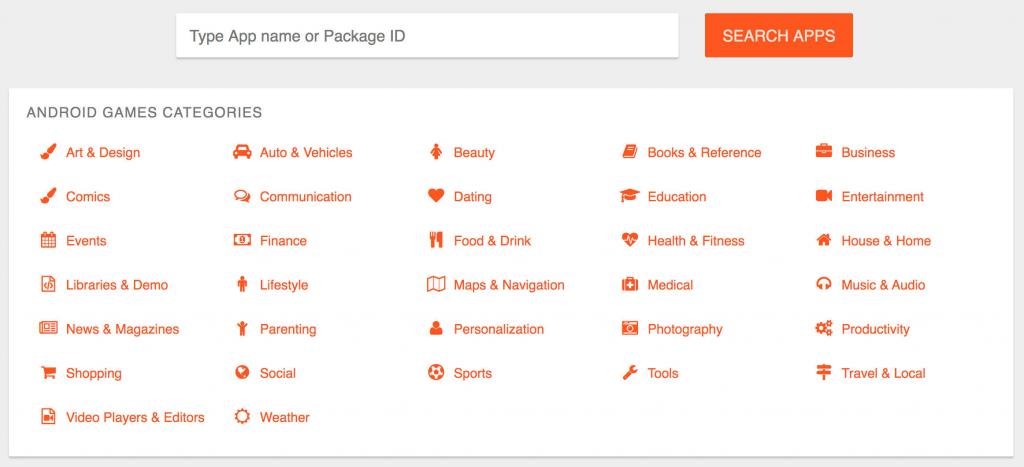 這個網站的主要功能是下載,通過搜索應用名、應用包名,解析 Play 商店的地址來獲取對應應用的信息和下載地址;同時和 APKPure 類似,這也是一個帶有應用市場屬性的網站,它可以按照排行榜、分類等自行查找游戲或者應用,也支持中文。