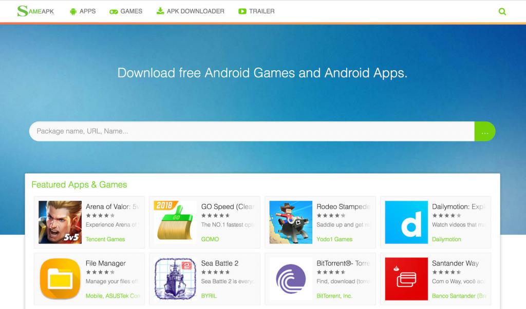 SameAPK 也是時間挺長的一個 apk 下載站點了,進入首頁,可以直接通過應用鏈接、應用包名、應用名來搜索 Google Play 商店上的 apk,網站能夠解析出應用的相關信息并提供下載地址。同時也支持應用分類,也可以在上面尋找一些有意思的應用
