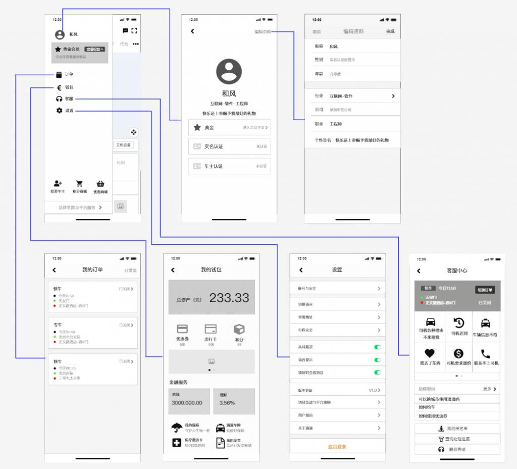 類型:訂單、錢包、客服、設置。