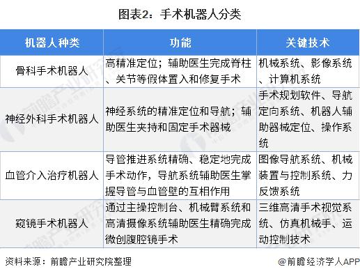 手術機器人是醫療機器人產品種類之一,是一種根據醫療領域的特殊應用環境和醫患之間的實際需求,編制特定流程、執行特定動作,然后把特定動作轉換為操作機構運動的設備。目前手術機器人多用于骨科手術、神經外科等手術中的輔助定位、造影建模或者是開刀等場景。