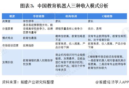 機器人教育和教育服務機器人在中小學生教育領域的應用往往是相輔相成的。目前教育機器人有三種收入模式,一是對學校銷售,企業為學校提供打包方案——編程實驗室,包括機器人產品、編程課程設計、教學軟件平臺、老師培訓等,由學校教師在學校帶領學生使用學習 ; 二是機構培訓,市場培訓機構購買 / 加盟教育機器人的產品和課程,提供商業化培訓課程,由機構老師帶領孩子學習,時間一般為周末及寒暑假 ; 三是 C 端銷售,家長購買后在家庭中陪孩子使用學習,時間靈活。教育機器人的銷售首先在學校和機構培訓開始放量,通過學?;驒C構教師的專業權威性進行市場培育,C 端銷售家庭使用作為補充,目前滲透率還較低。