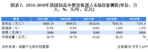 中學教育機器人以編程機器人為主,相關的編程比賽較多,逐步與升學掛鉤,對應的中學生家長支付意愿更強。根據國家統計局統計的普通高中和初中階段教育在校生數據,2019 年我國初高中在校生總數約 7241.40 萬人 ; 以 1.2% 的教育機器人市場滲透率和 8000 元 / 年的人均學費推算,2019 年我國初高中教育機器人市場容量達到 70 億元。